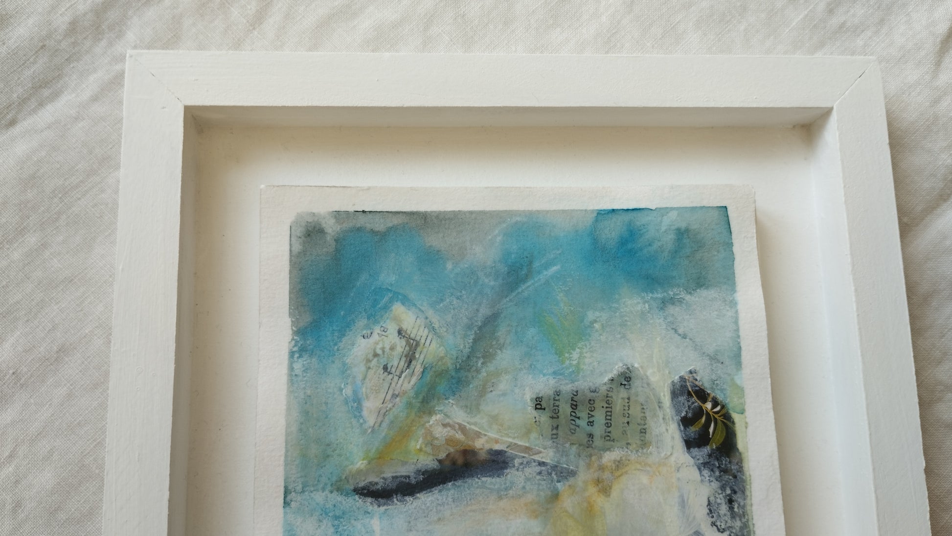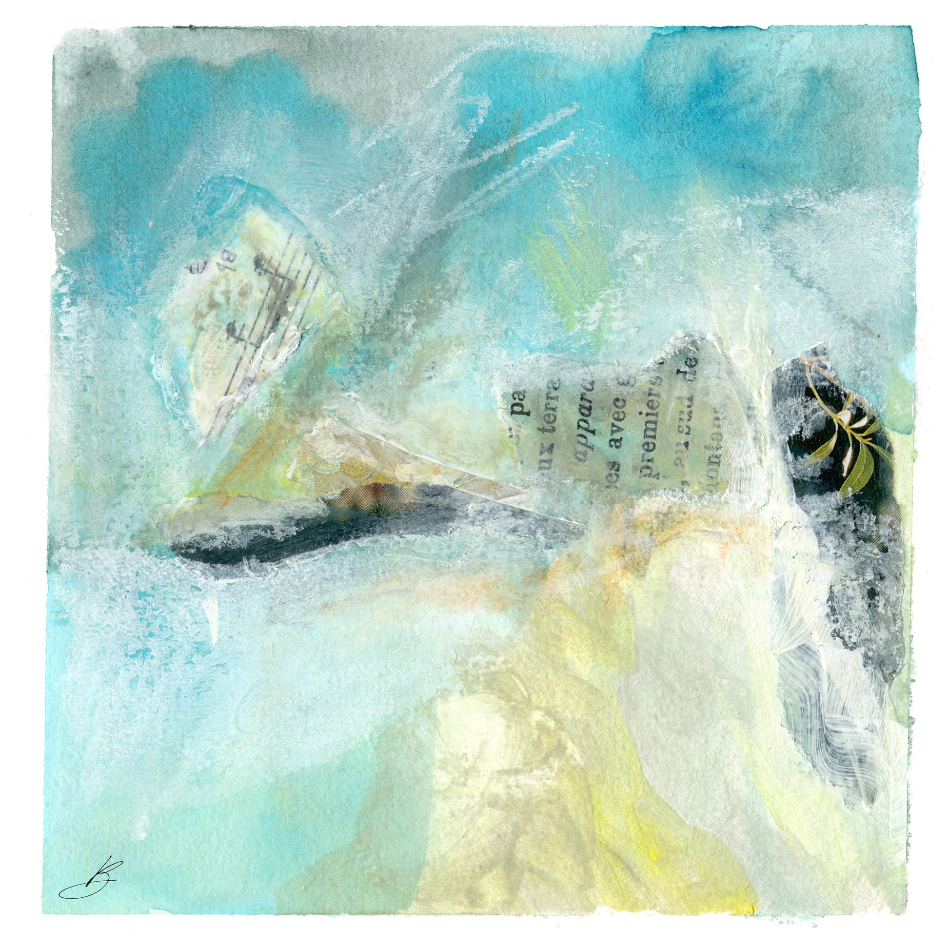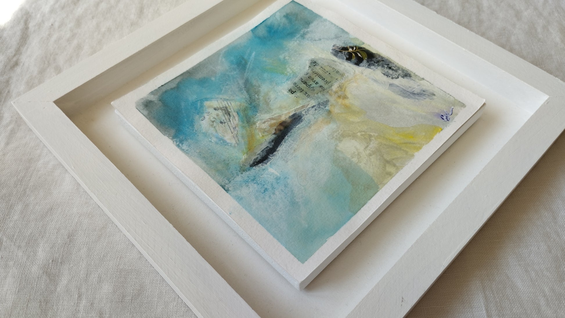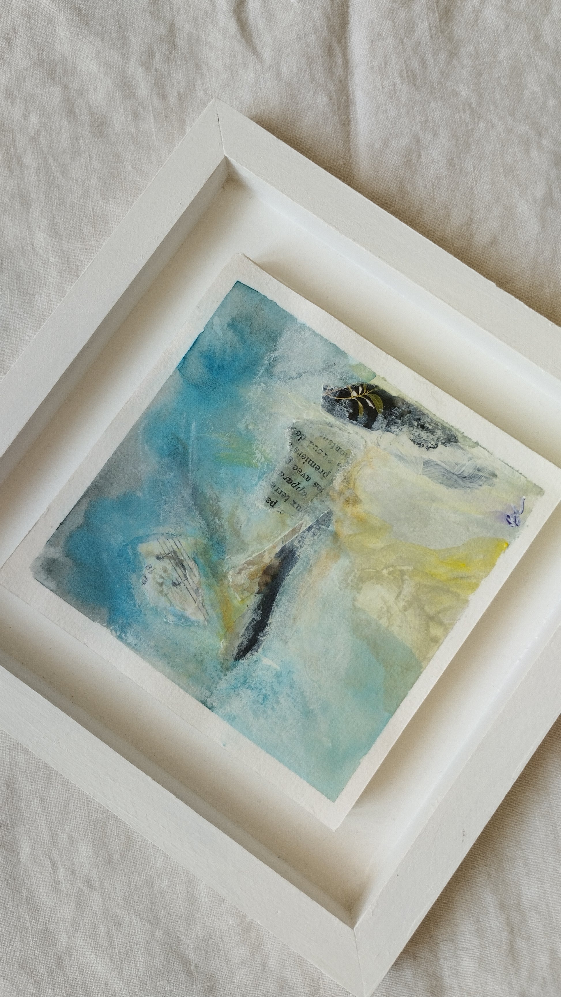 Island is a semi-abstract series that began with the need to find myself in silence in front of squares of paper to mix and explore, paste and ink with no objective other than to immerse myself in this moment. These are the colors and shapes that created the wind and waves, the light and the storms. This series was transformed into islands, these meeting places between land and sea, and reminded me of my trip to Ireland, on the island of Aran. The names of the Scottish islands stood out to me through my meeting with a Scottish woman who became a true friend and whom I wanted to honor.