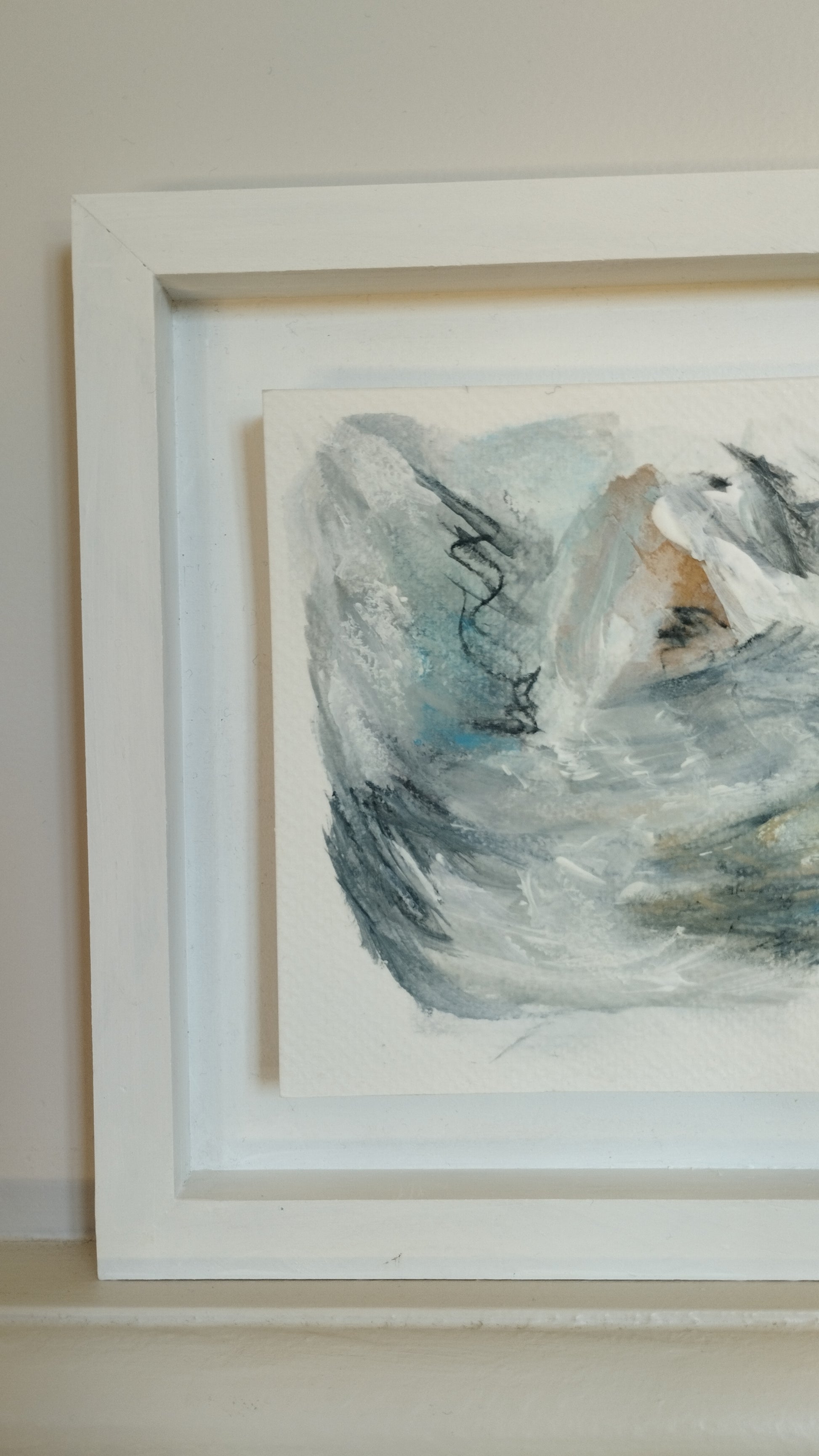 Each piece is a unique concentrate to be placed in a special place so that each time you look at it, you find an echo of wild freedom. A desire to push boundaries and embrace your freedom. Marine abstractions, soft textures and bluish washes.