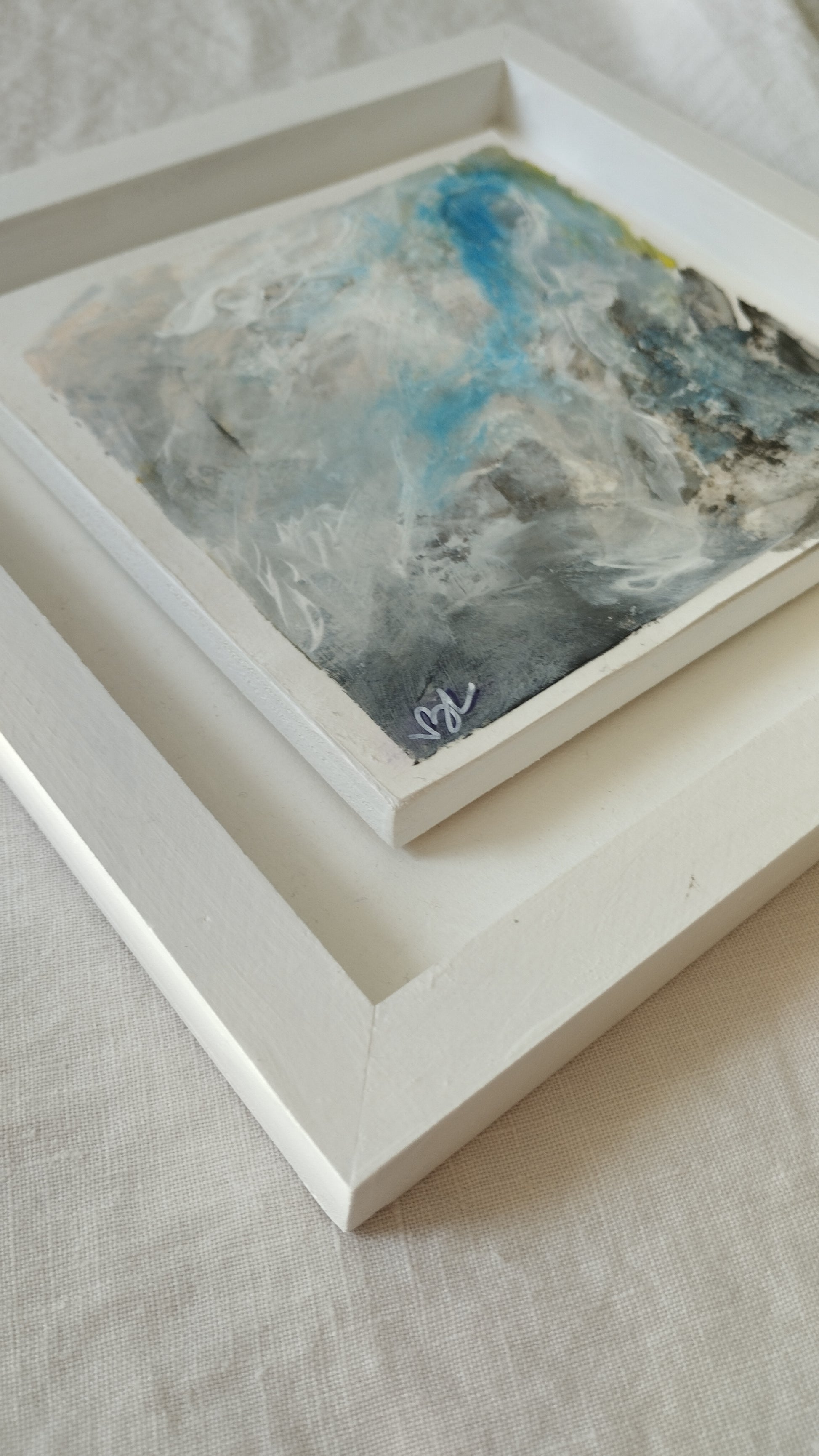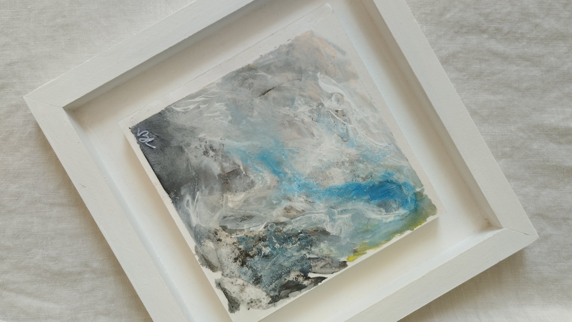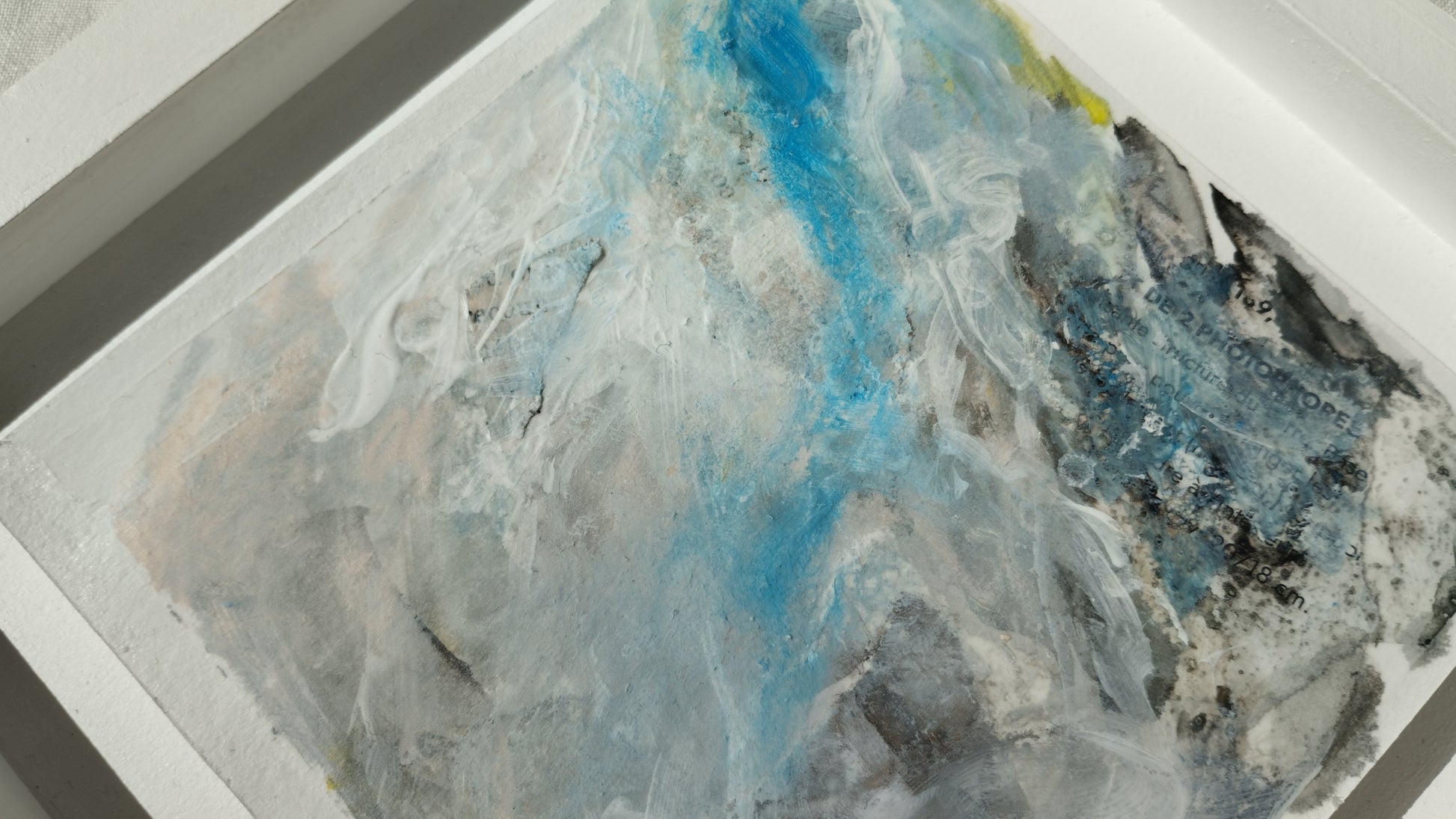 Each piece is a unique concentrate to be placed in a special place so that each time you look at it, you find an echo of wild freedom. A desire to push boundaries and embrace your freedom. Marine abstractions, soft textures and bluish washes.
