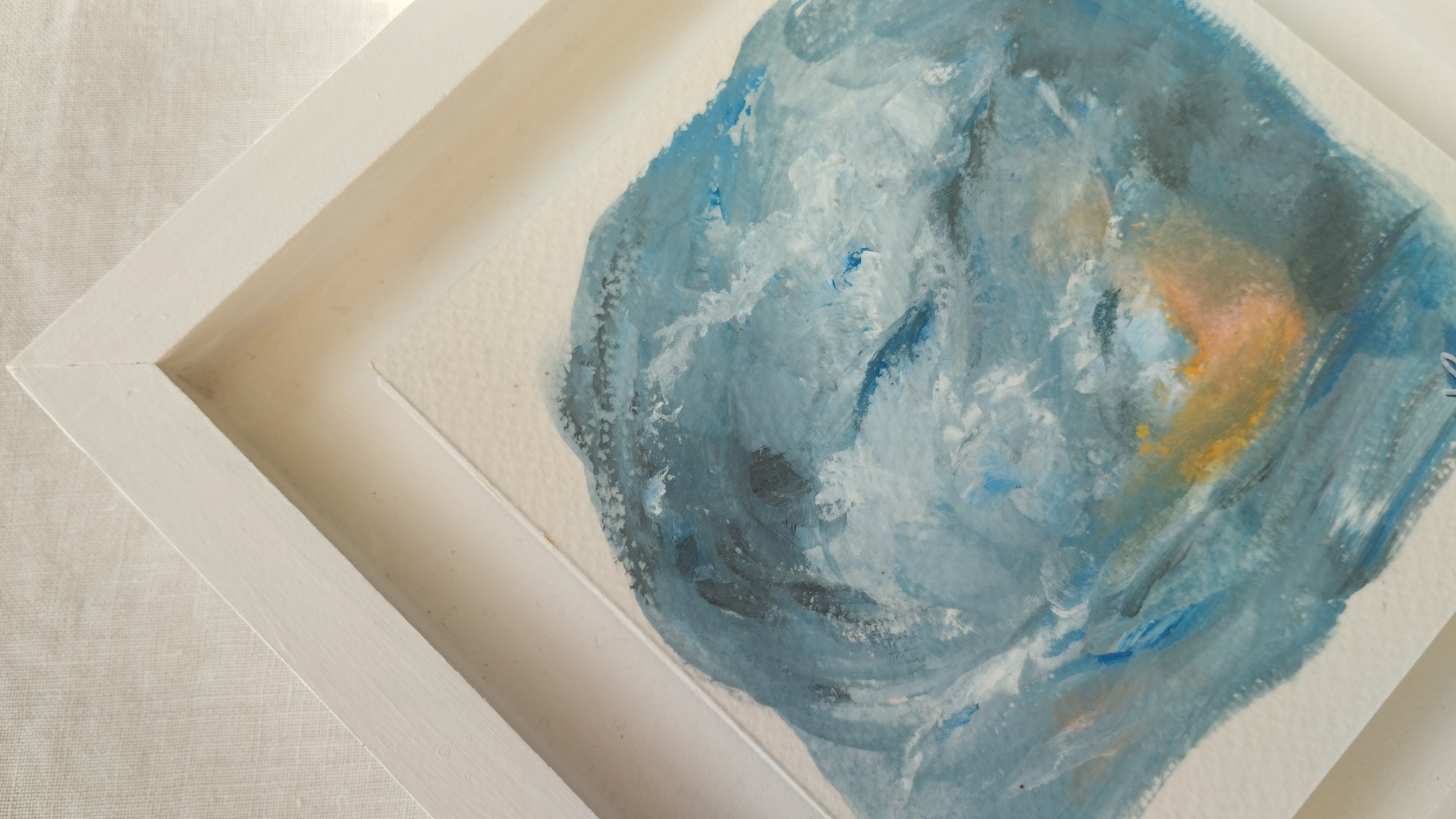 Each piece is a unique concentrate to be placed in a special place so that each time you look at it, you find an echo of wild freedom. A desire to push boundaries and embrace your freedom. Marine abstractions, soft textures and bluish washes.