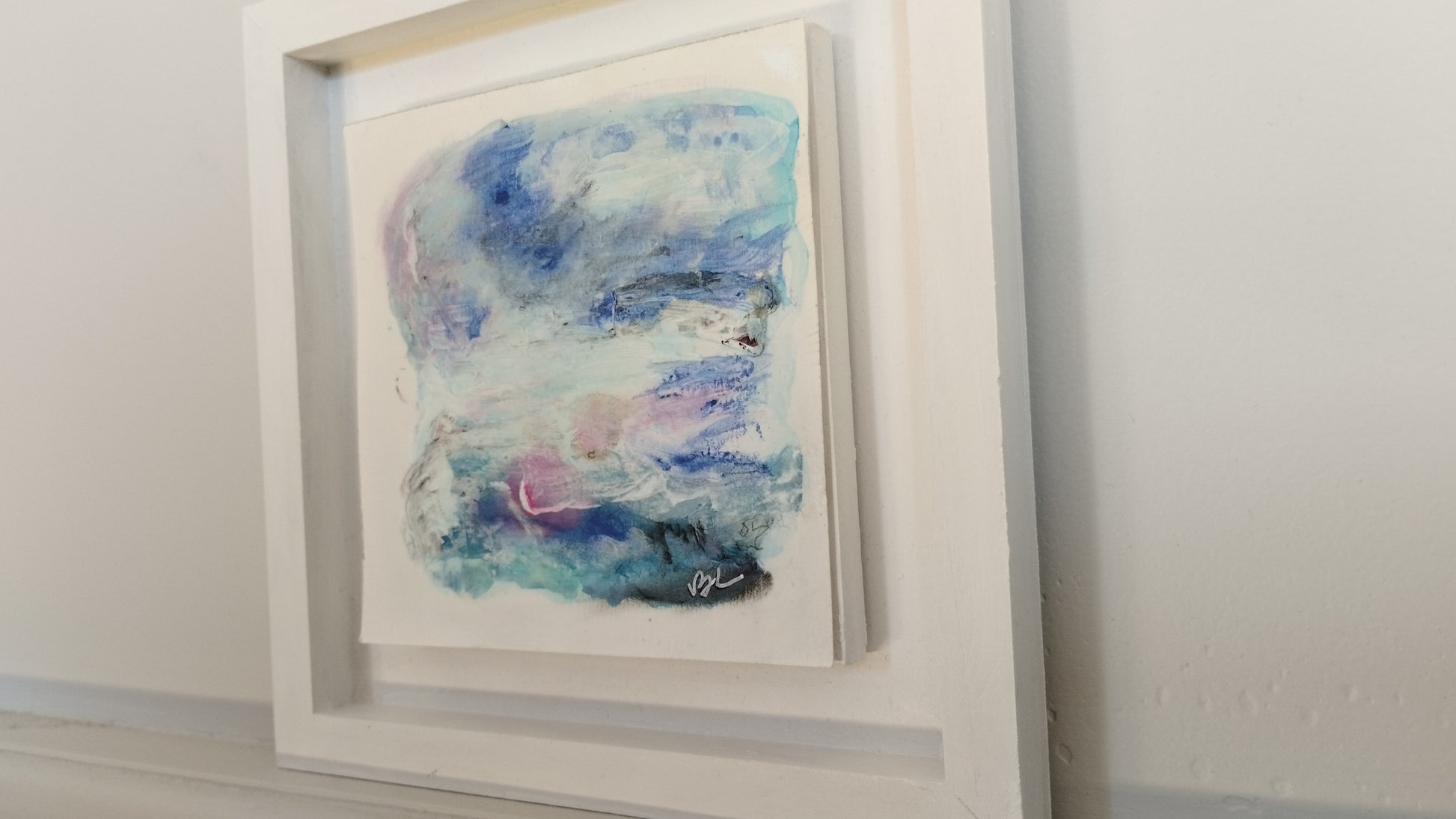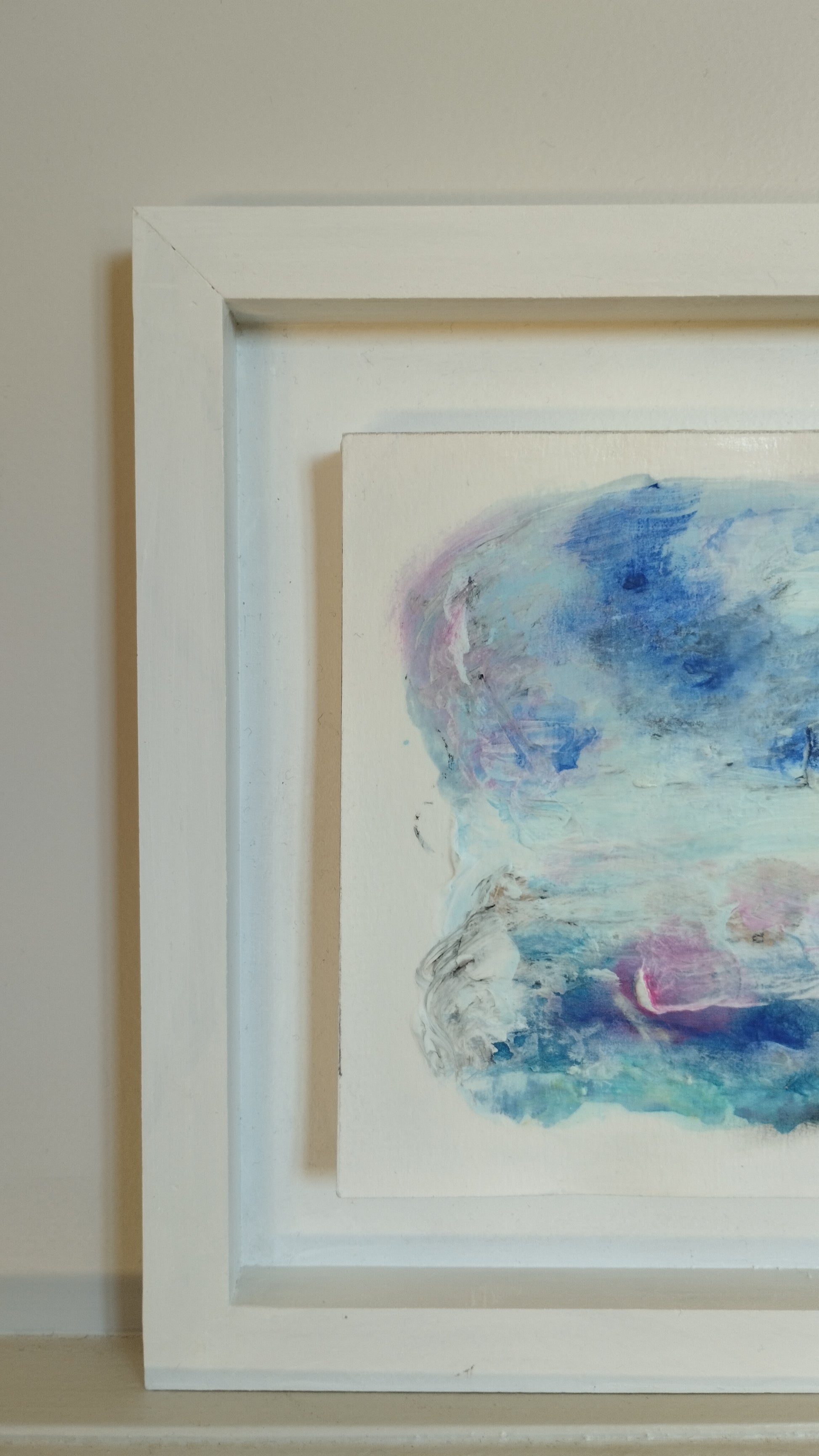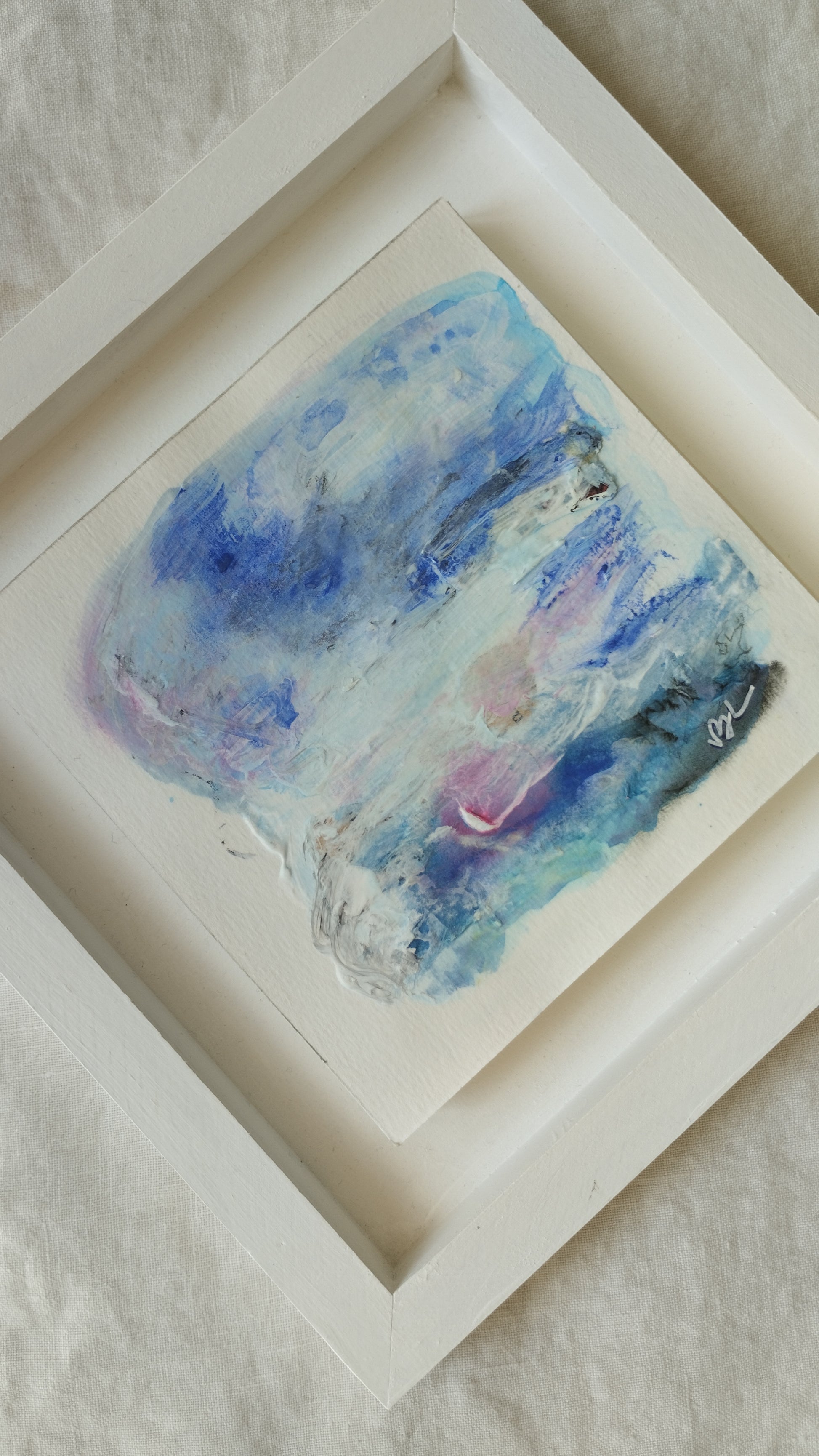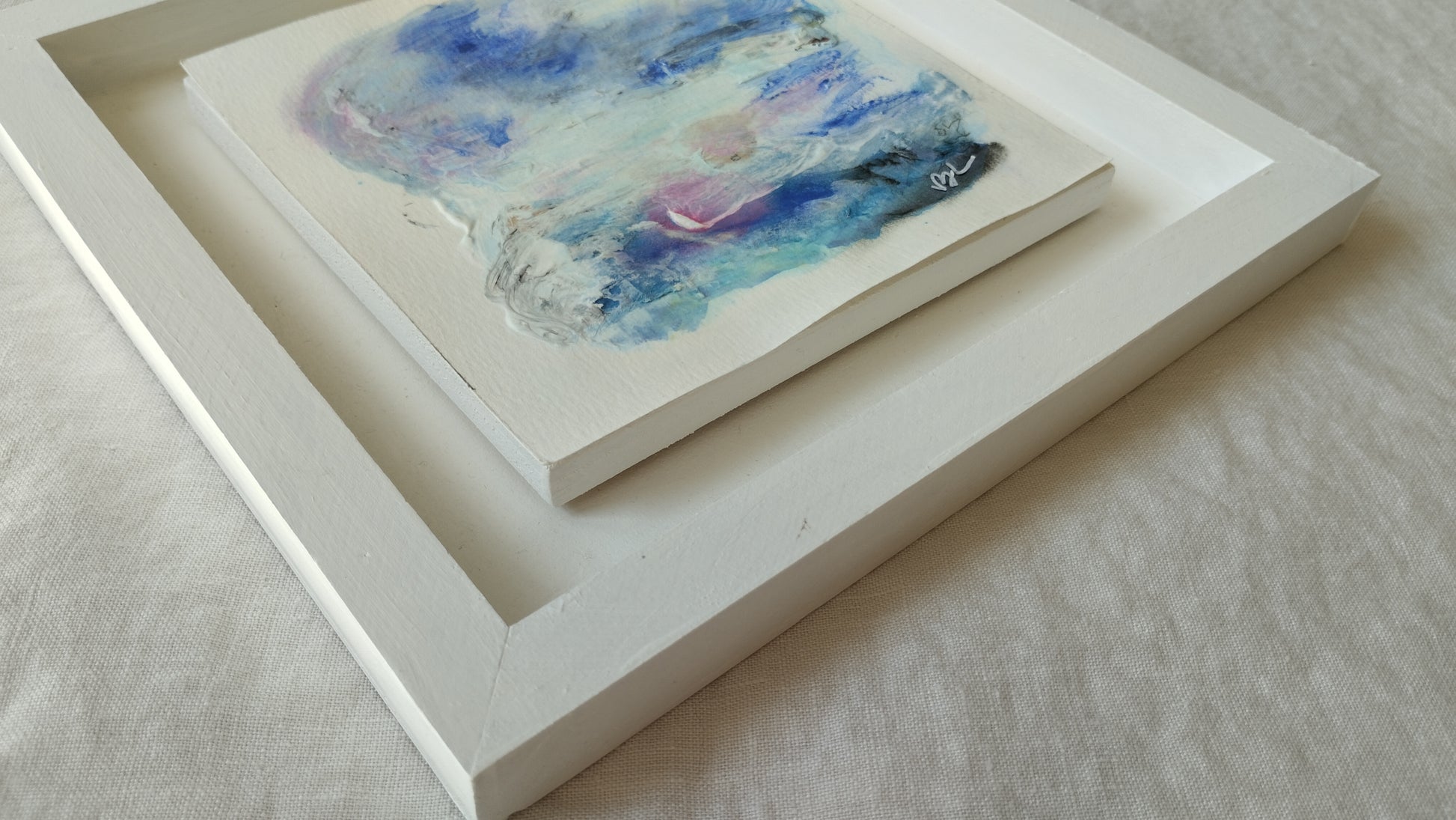 Each piece is a unique concentrate to be placed in a special place so that each time you look at it, you find an echo of wild freedom. A desire to push boundaries and embrace your freedom. Marine abstractions, soft textures and bluish washes.